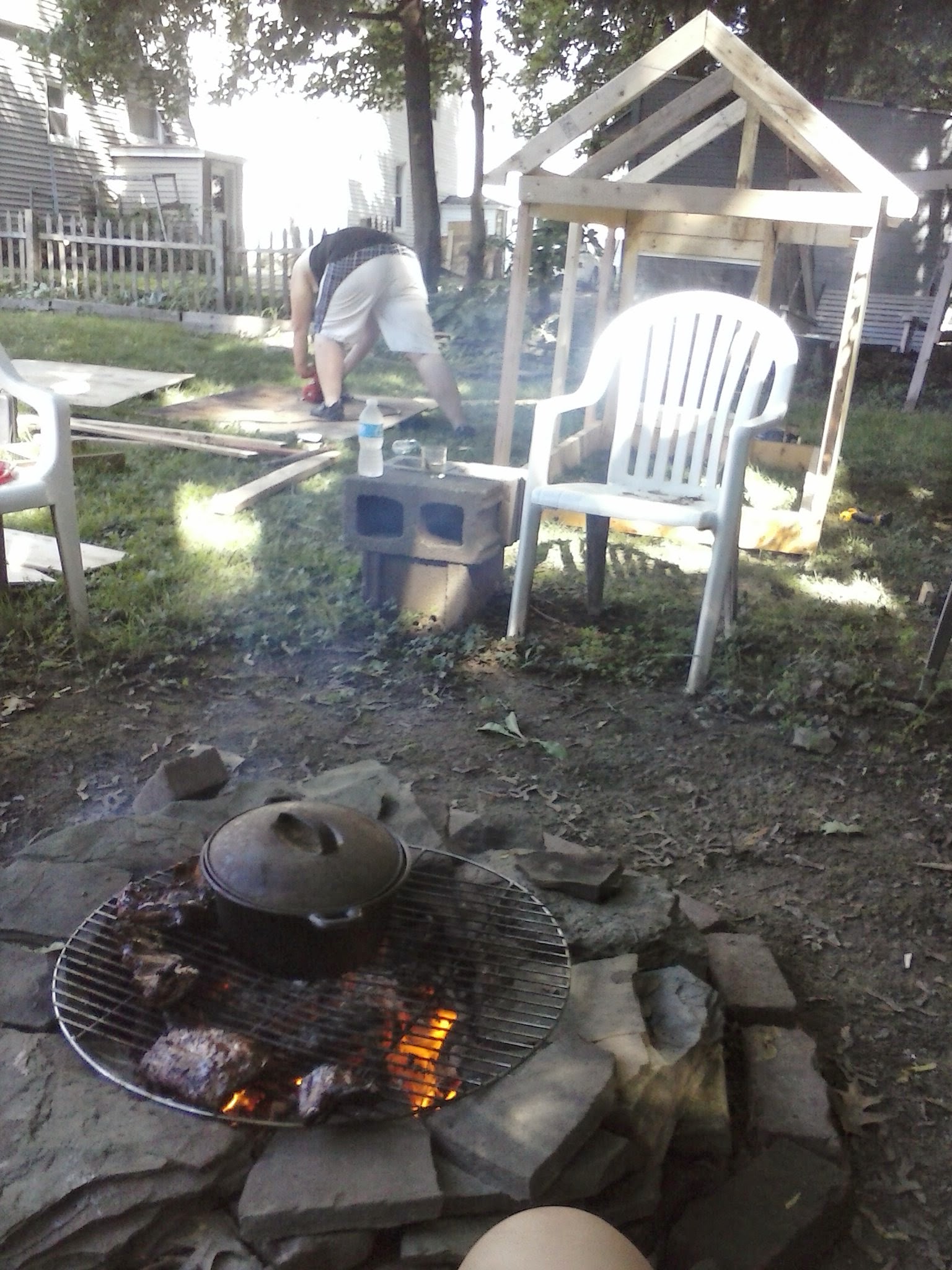 After a while, it was clear, it was going to take longer then expected. So I started a fire and made our dinner on it. Sure enough not only did my neighbors have some entertainment they also had to smell some BBQ Ribs and Ranch potatoes. Nothing better then a home cooked campfire meal for all of our hard work. So I guess you want to know what I bartered my mom for?