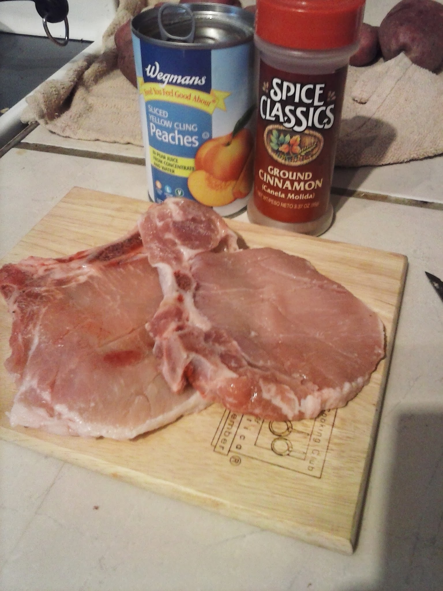 I cook the pork chops into the peach juice.