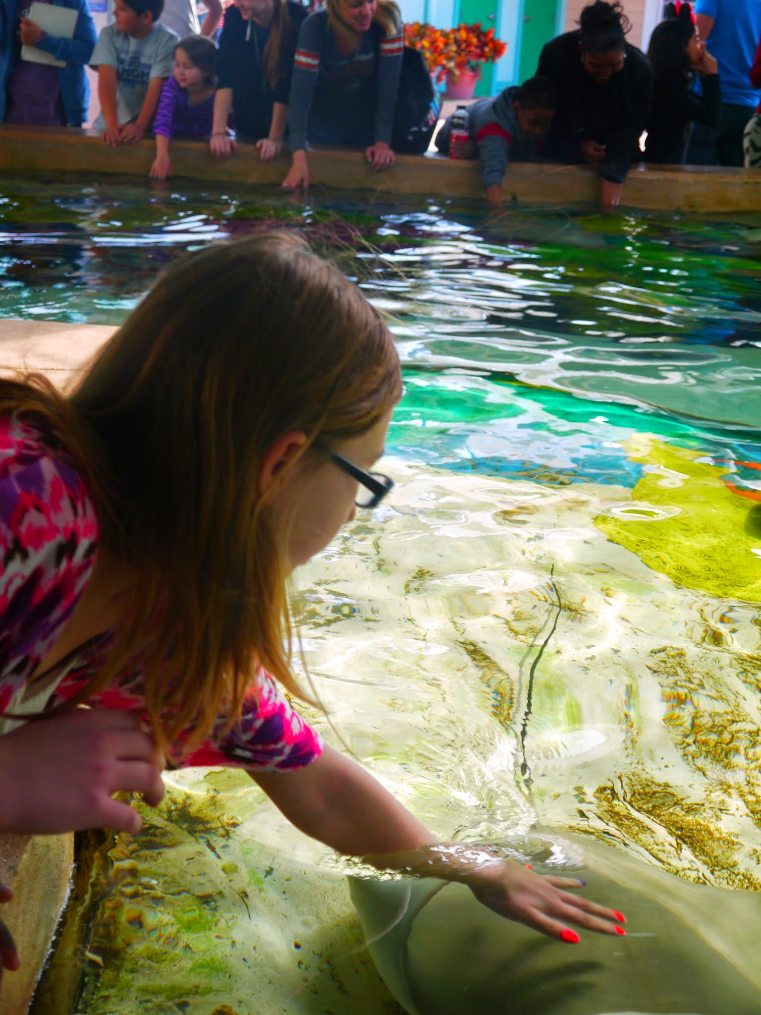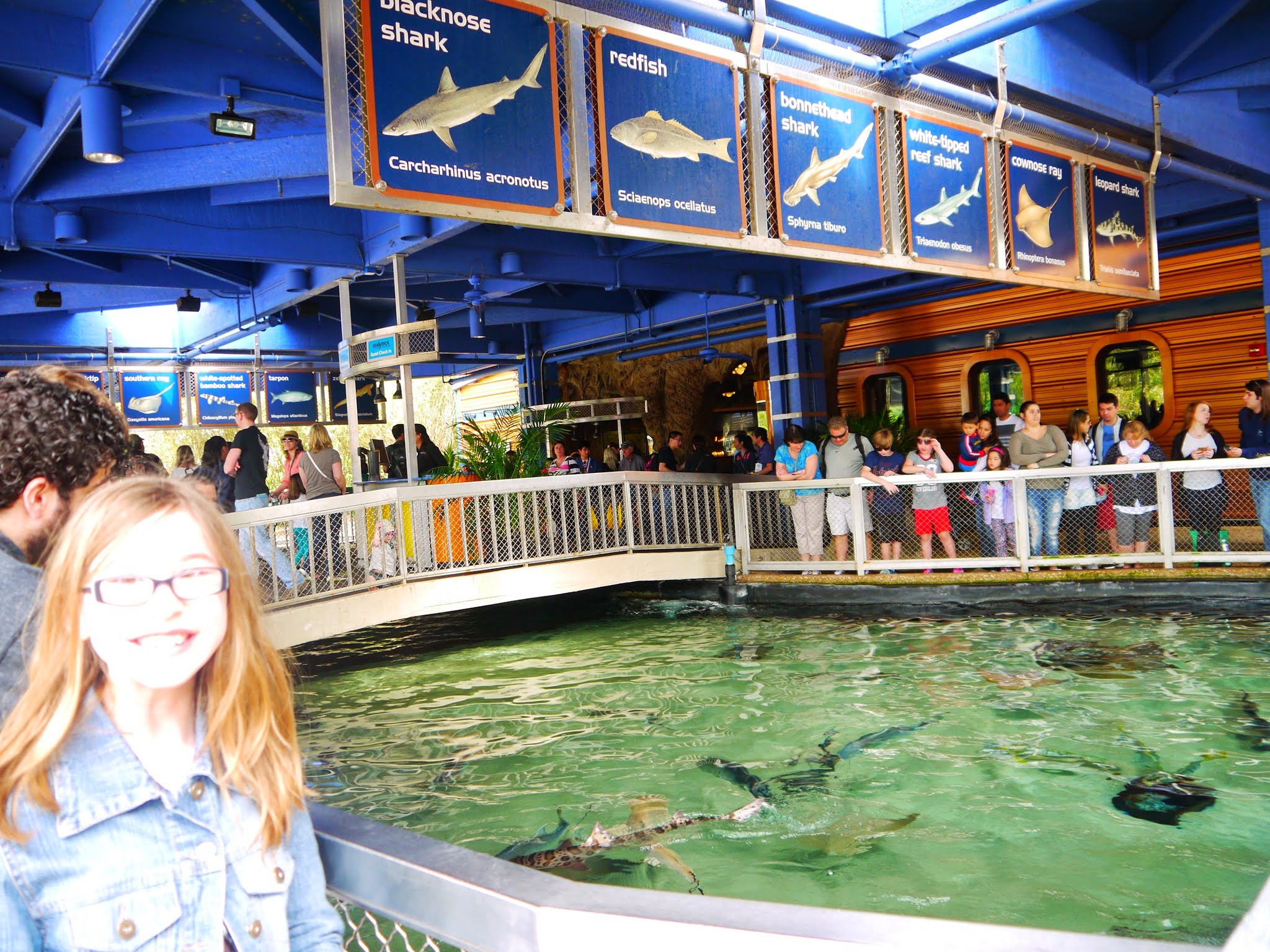 Moment of truth time. All day I was trying to get her to work up the courage to touch a sting ray with me. This is my favorite part and the thing I looked forward to the most! They house more than 200 rays—some with wingspans up to 5 feet—spend warm days gliding through their habitat’s peaceful waters.