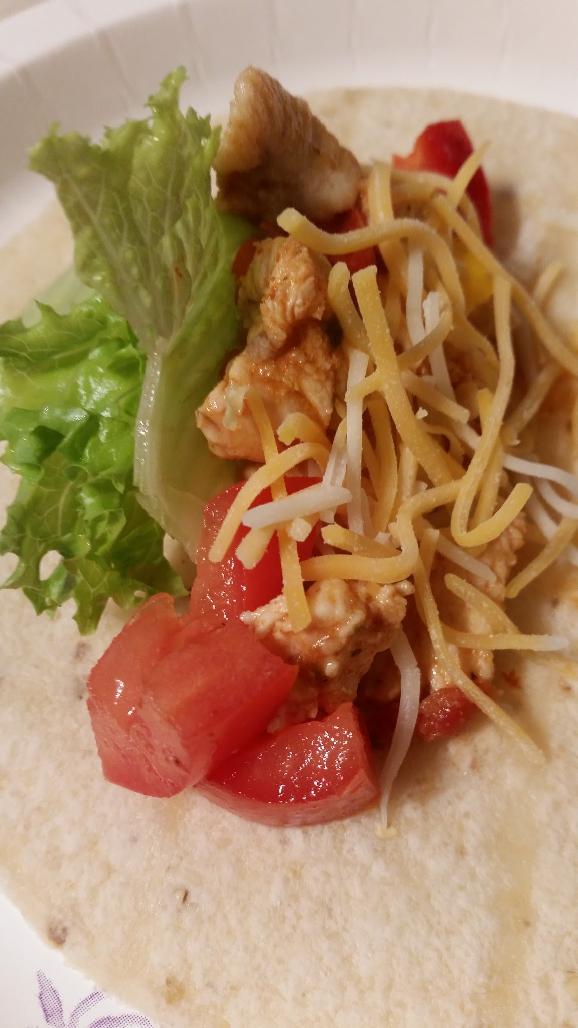 Load tortilla shells with all the fixings including the cooked chicken.