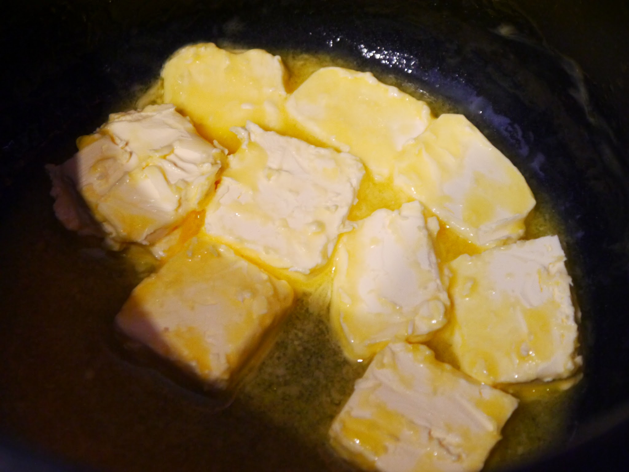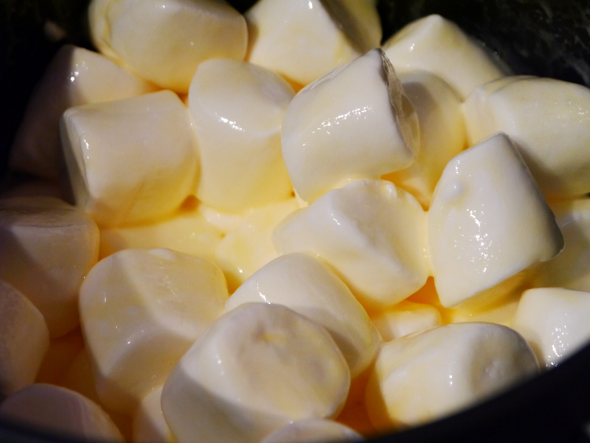 Keep mixing until the marshmallows are gooey. Add 2 cereal bowls of the rice crispy cereal and mix together. Set in the refrigerator for 10-15 minutes until mostly solid.