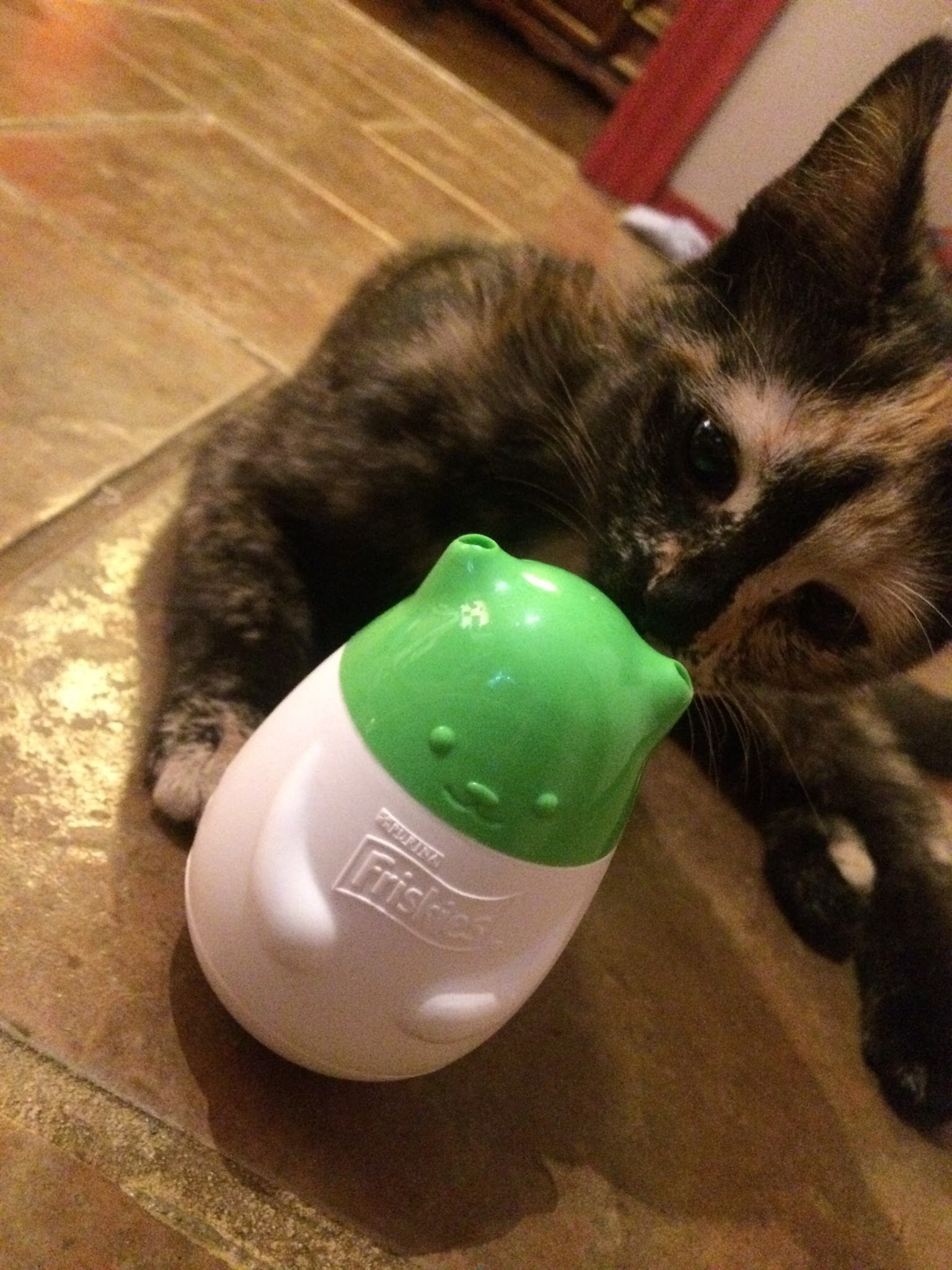 Before I could place any treats into her new toy she had already started bating at it. Talk about a cat toy winner!