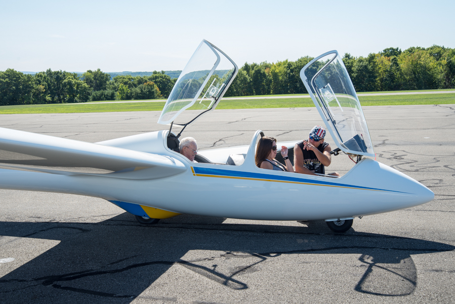 The ASK-21 is a two-seat (one passenger, one pilot) glider with a close resemblance to a paper air plane. The unique design has been carefully crafted through the years and you can tell something life changing is about to happen. We all took turns getting acquainted with our pilots before stuffing ourselves into the wrap around canopy. I should take a moment and mention the weight limit is 245 pounds for a reason. Not to upset anyone but to help balance the weight between you and the pilot. Again compare it to a paper air plane, as you soar through the air you need to be balanced to help maneuver and give you the best spectacular views possible.