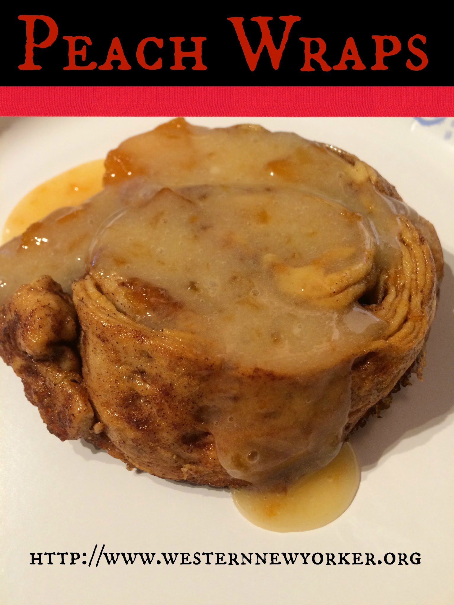 Roll rolls up and slice. Place the rolls in a baking pan and preheat oven to 350 or as directed on your roll container. Add the cinnamon roll frosting, 1 tbs of jam and some diced peaches into a bowl and whip. Set aside.