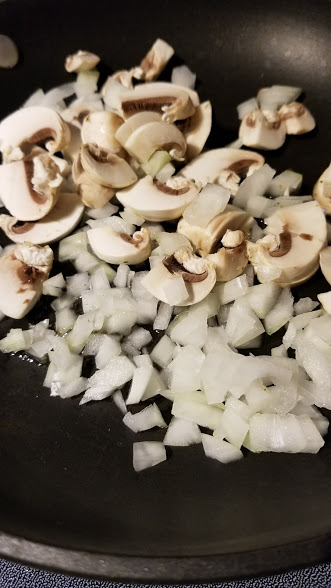 Add some Olive oil to a frying pan along with onions and mushrooms.