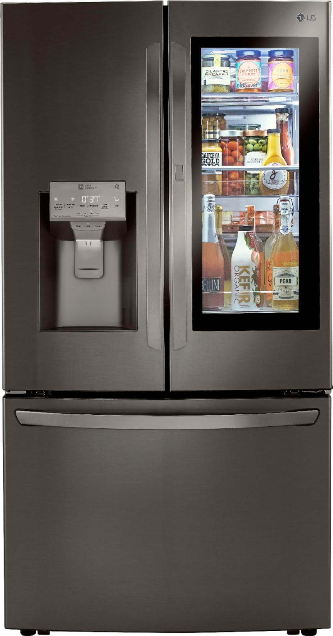 INSTAVIEW DOOR-IN-DOOR The LG InstaView™ design lets you see inside your refrigerator without ever opening the door—simply knock twice on the unique glass panel Offering quick and easy access to favorite foods, the popular Door-in-Door® design gets even better with an adjustable bin that fits snacks and drinks of all sizes Bin glides smoothly up and down and locks into place with minimal effort