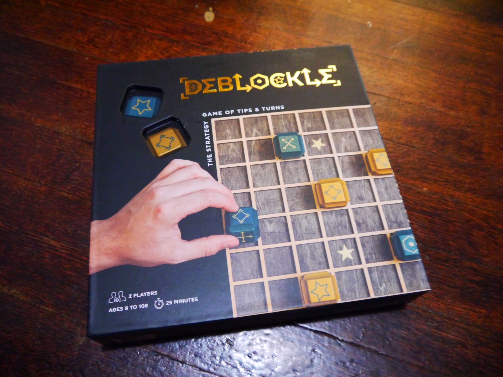 DEBLOCKLE DEBOCKLE is a game of strategy and patience. Reminds me of checkers trying to get all your pieces to the other side of the board before your opponent but you must use strategy like in chess. Thinking before you make each move, not only do you need to get to the other side but each turn of your block effects your next move.