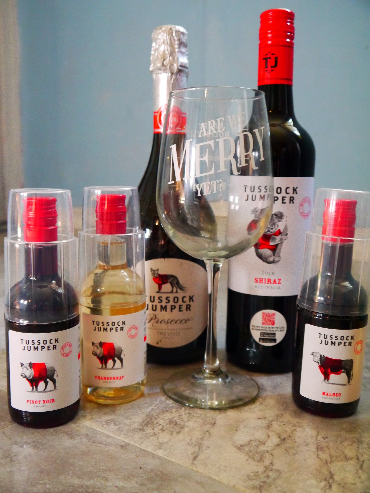 Tussock Jumper small bottle wine collection is a great stocking filler! Choose from the following: Pinot Noir, a Chardonnay, a Malbec, and a Pinot Grigio from France, Argentina, and Italy. Maybe a sparkling Prosecco from Treviso, Italy (a personal favorite) is more appealing? Whether a gift under the tree or a bottle to bring to Festive gatherings you will not be disappointed!
