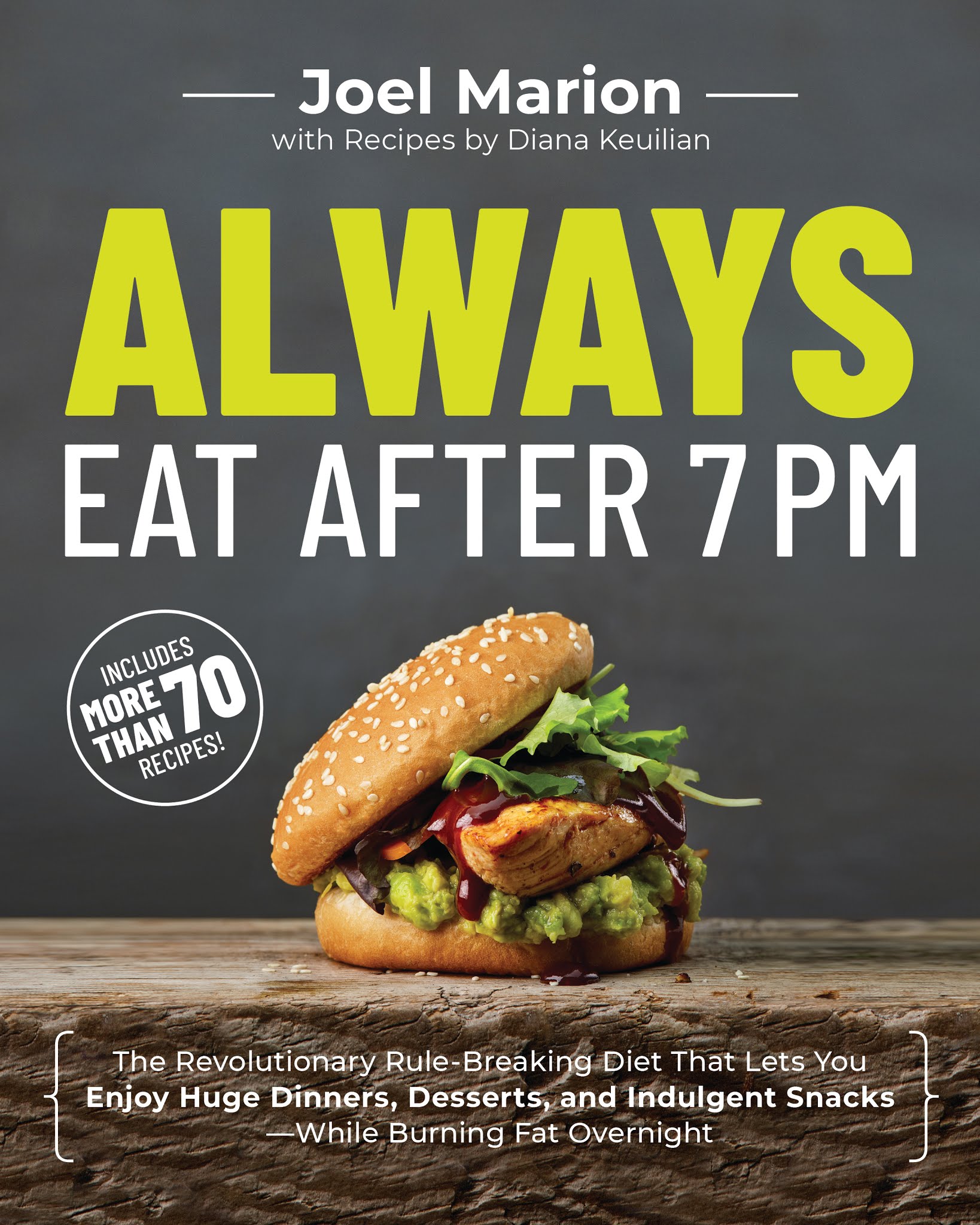 The book, Always Eat After 7 PM debunks popular diet myths and offers an easy-to-follow diet that accelerates fat-burning and allows you to indulge in your most intense food cravings: Eating the majority of your calories at night. We’ve been traditionally taught to avoid carbs, have an early dinner, and never eat before bed.