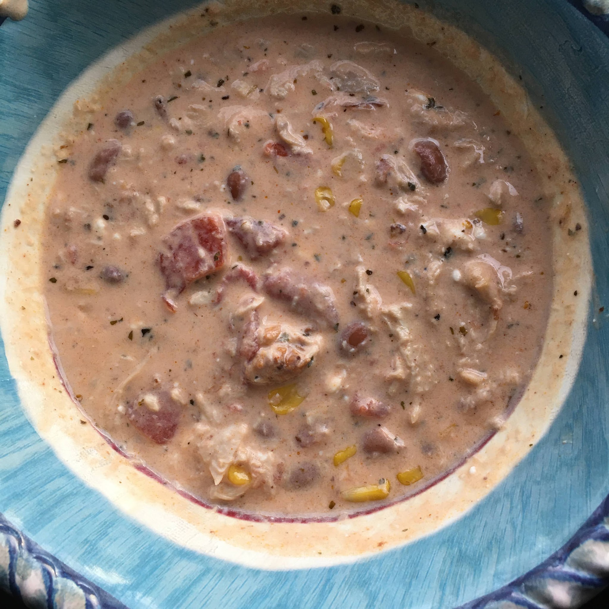 Make sure your chicken is fully cooked and shred chicken in the slow cooker. Stir contents to mix everything. I broke up tortilla chips and let me tell you it makes all the difference.