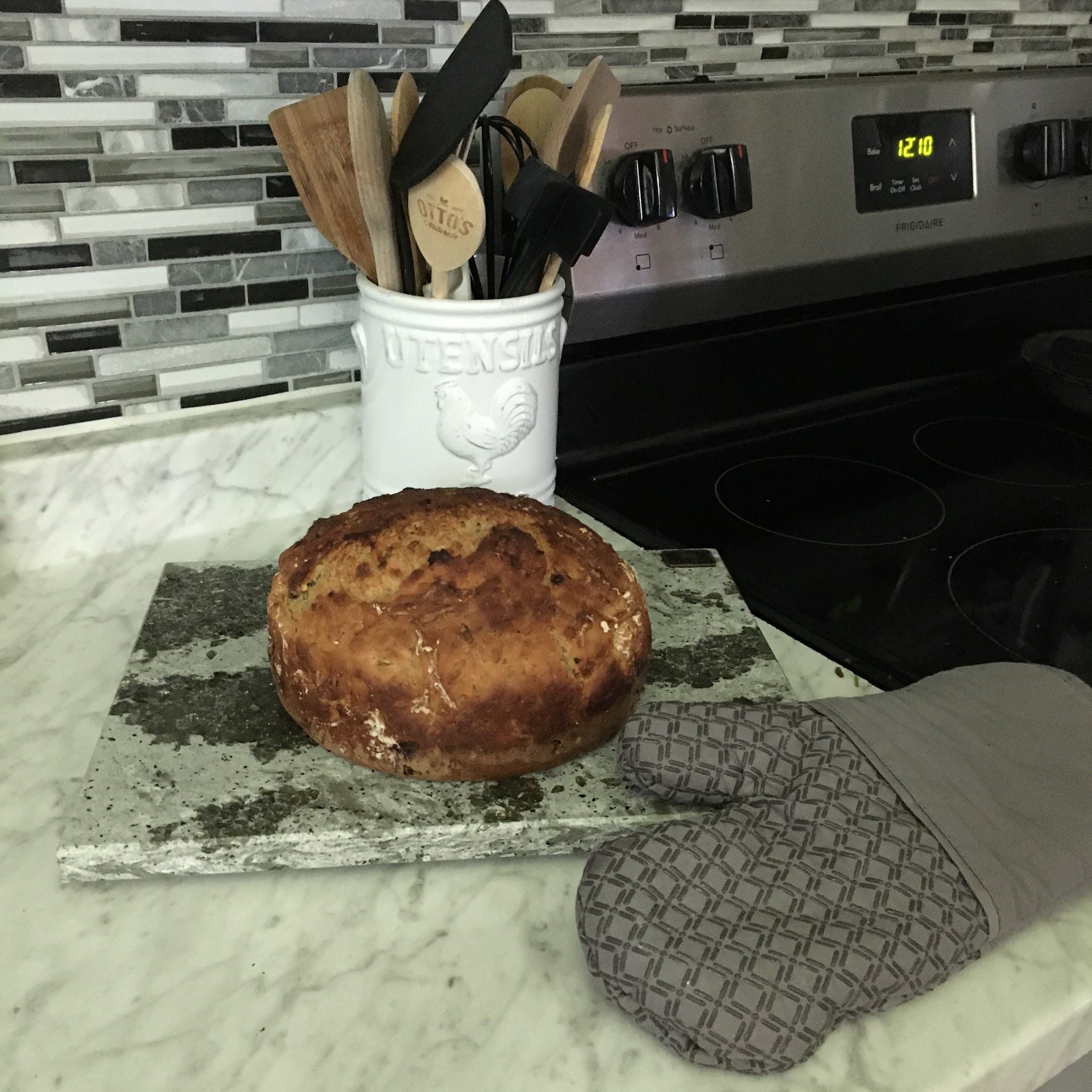 Mix ingredients together in a bowl (make sure to use warm not hot water). Cover and let sit to rise. I allow it to rise for at least 3-4 hours. You can of course let it set longer if you want. Spray a oven pan and bake at 400-425 degrees for around 30 minutes. Check to see if baked all the way through with a tooth pick.